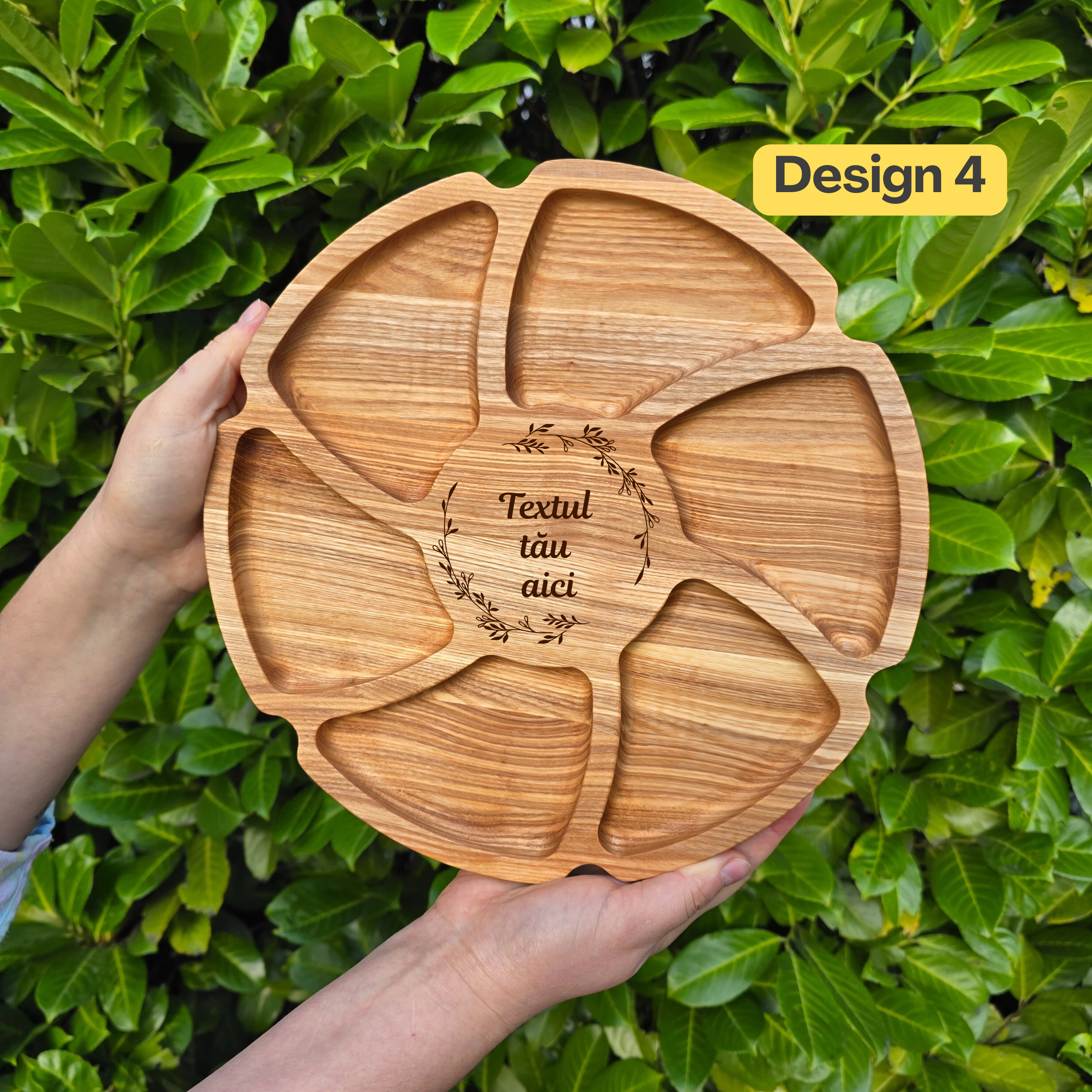 Platou „Floare”, din lemn natural de frasin, prelucrat manual, perfect pentru servirea bucatelor tradiționale sau a gustărilor preferate. Cu un design elegant și practic, platoul este alegerea ideală pentru orice masă sau un cadou memorabil persoanelor dragi.