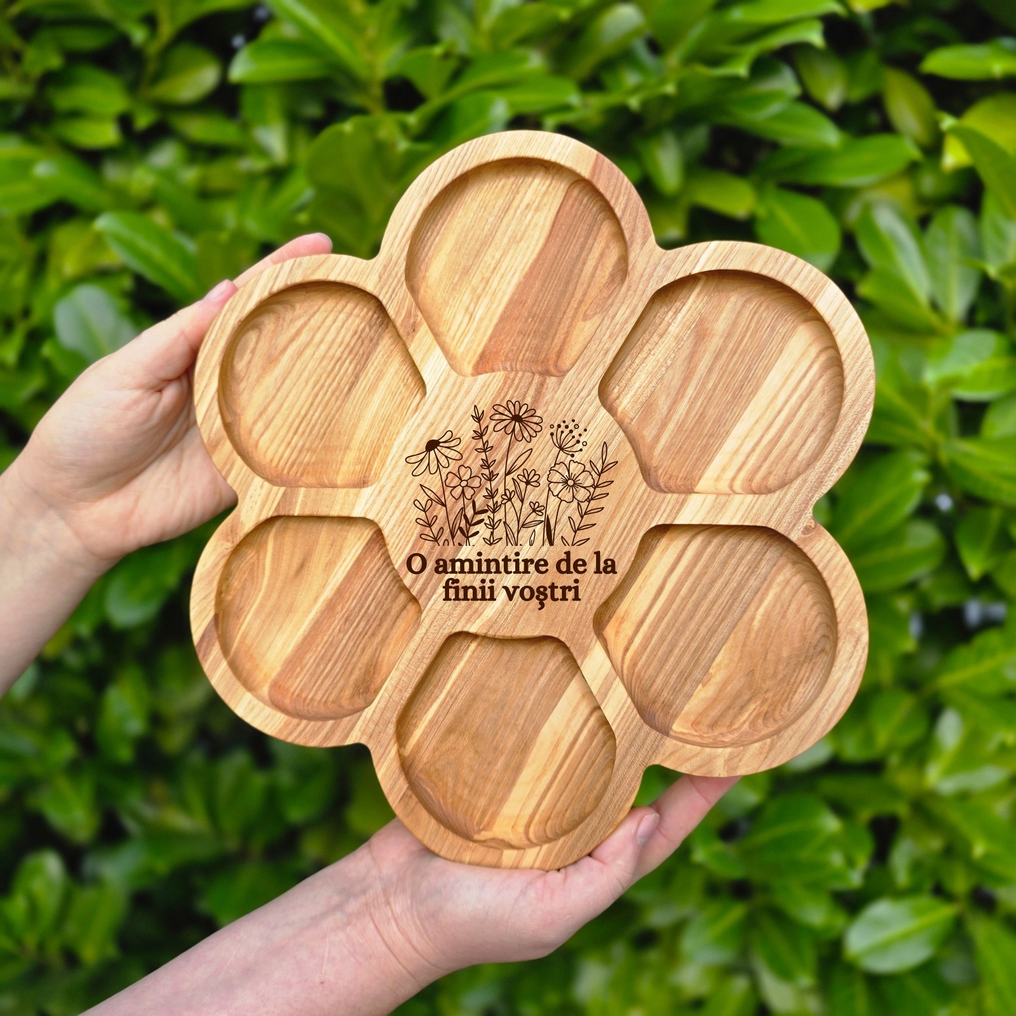 Prima pagină Produse din lemn Platouri personalizate Platou Floare Personalizat 6 Compartimente