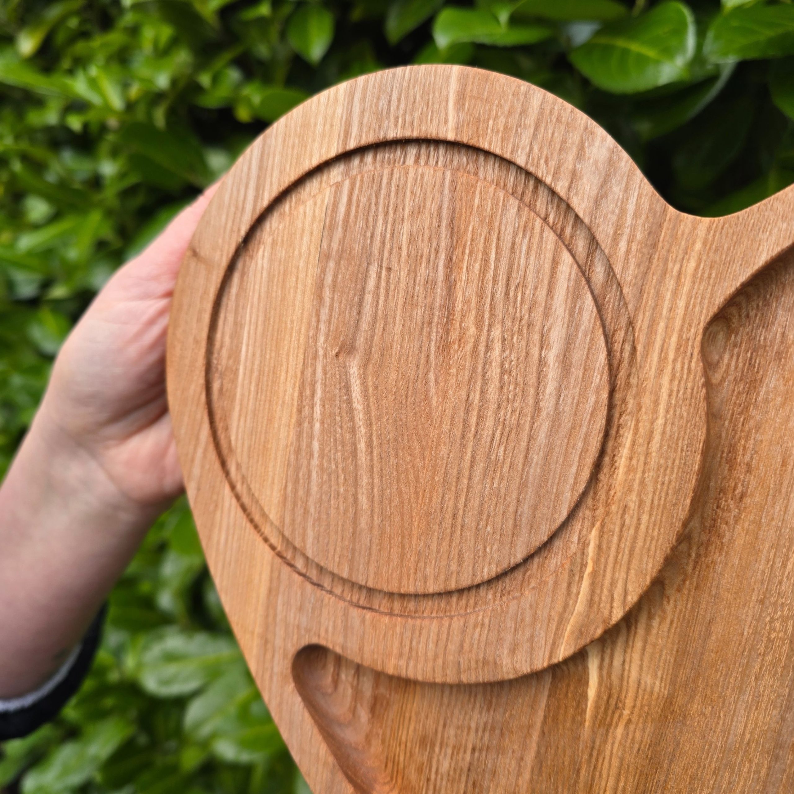 Platou rotund din lemn de frasin – lucrat manual și finisat cu ulei alimentar, sigur pentru contactul cu alimentele. Ideal pentru brânzeturi și cașcaval, aperitive sau mezeluri, cu design elegant și compartimente practice.
