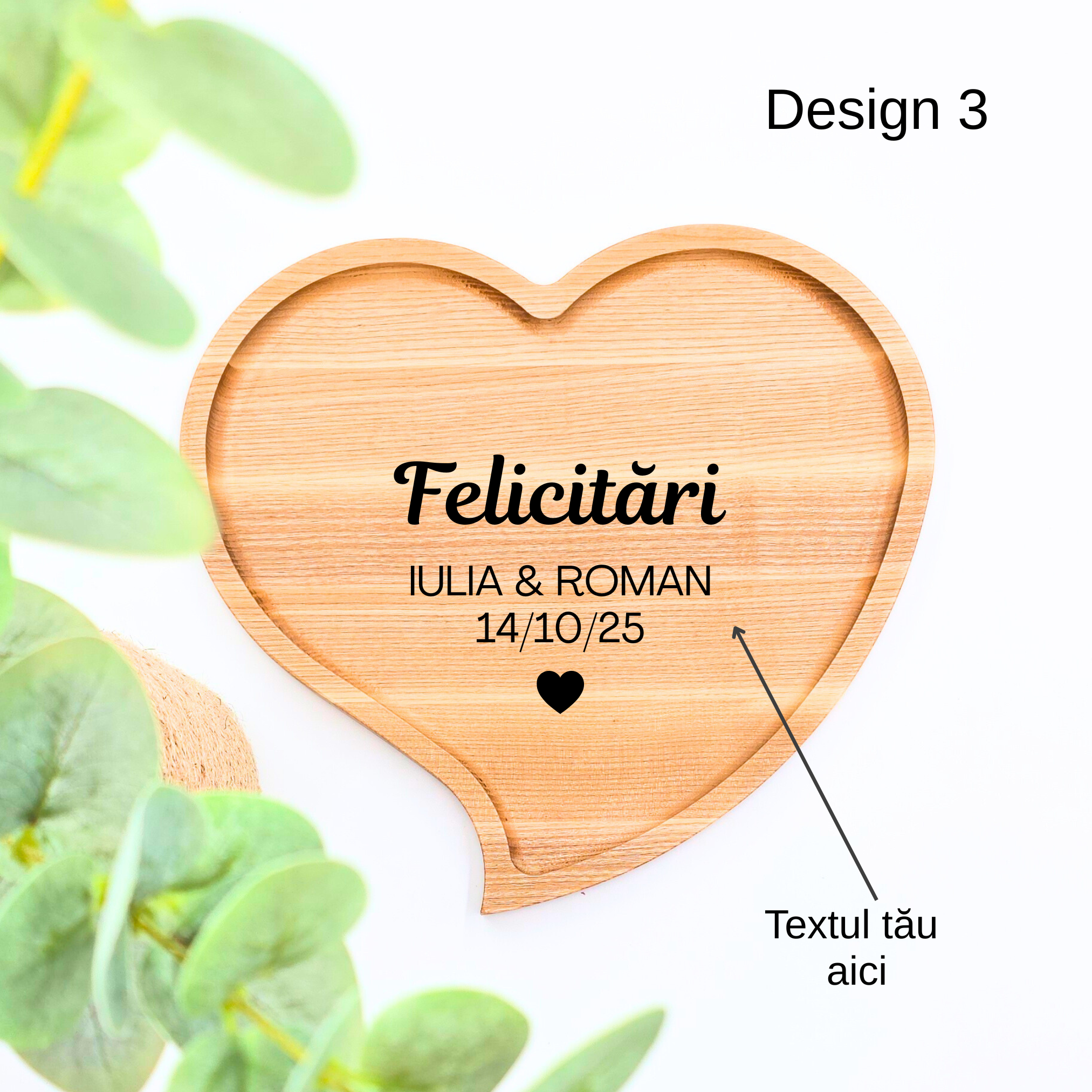 Îl poți personaliza cu un nume, mesaj scurt sau o dată, gravate pe față sau pe spate (opțional). Introdu mesajul în câmpul de personalizare. Pentru modificări sau cereri speciale, trimite-ne un mesaj – te ajutăm cu drag!
