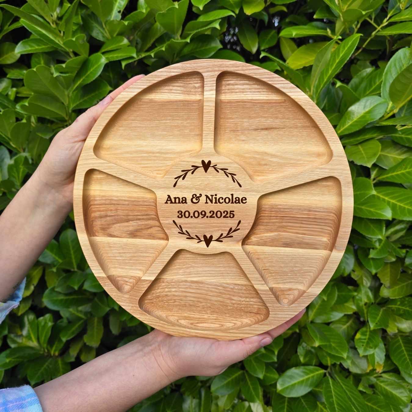 Prima pagină Produse din lemn Platouri personalizate Platou Rotund Personalizat 5 Compartimente