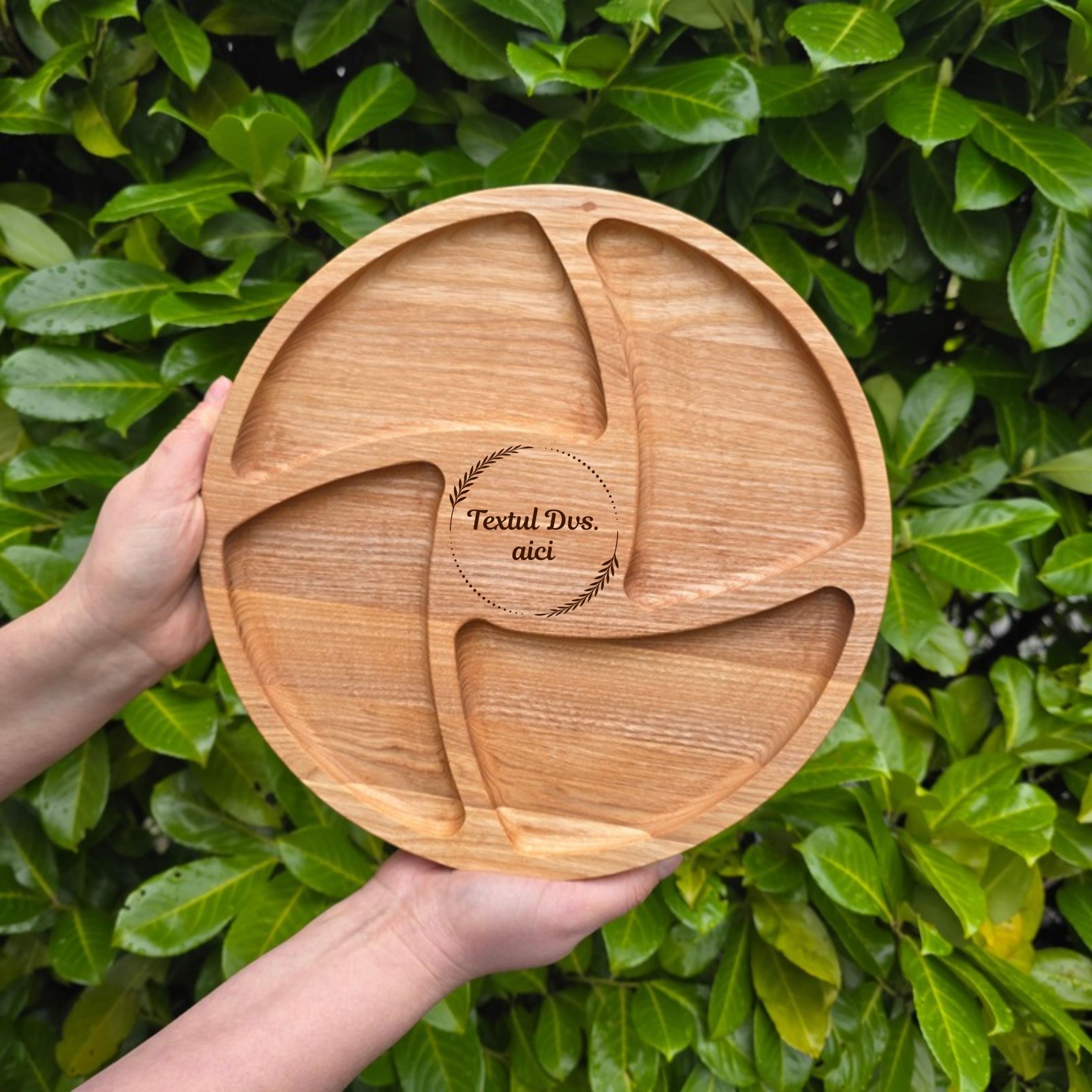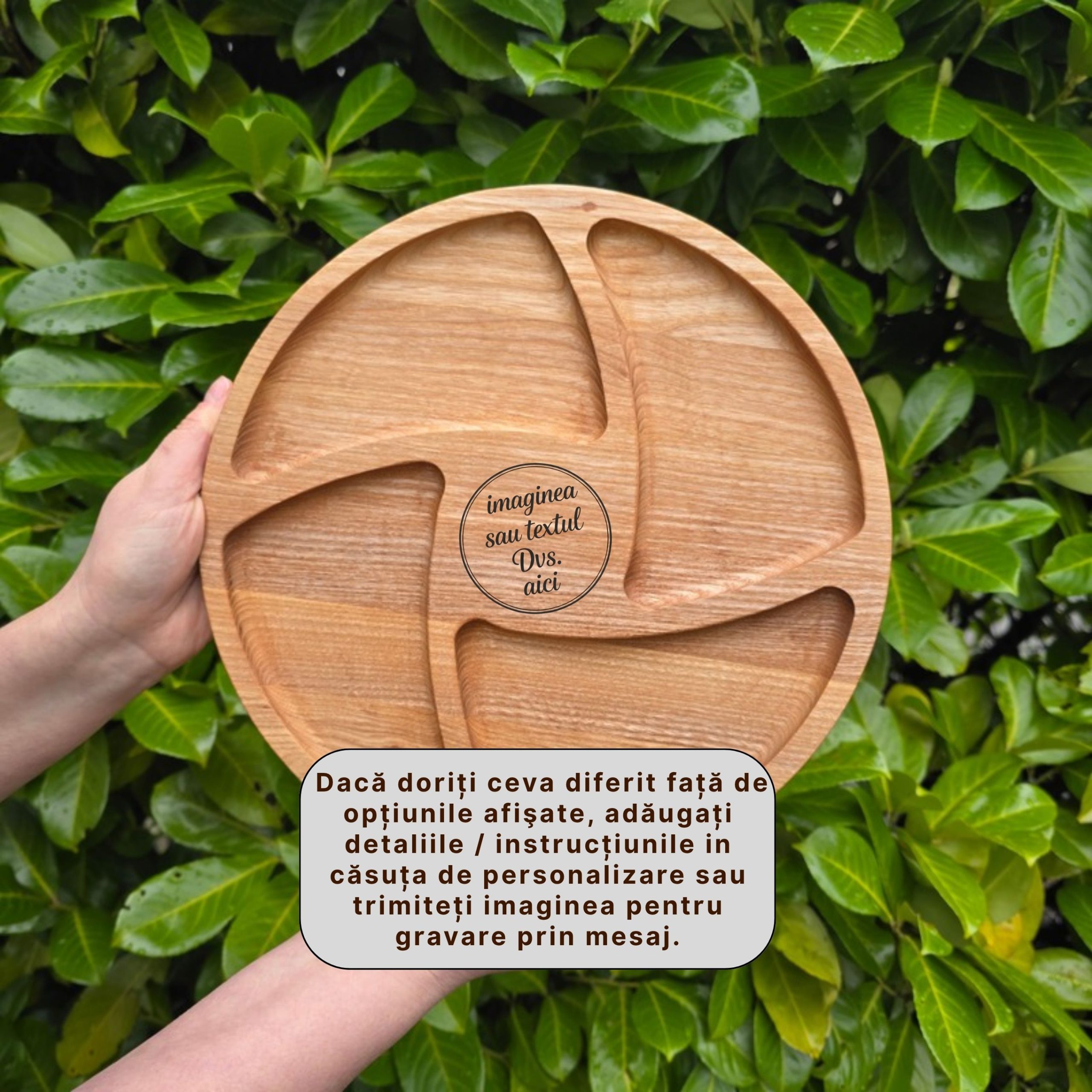 Prima pagină Produse din lemn Platouri personalizate Platou Rotund Personalizat cu 4 Compartimente