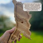 Platou „Moldova” din lemn de frasin, lucrat manual și finisat cu ulei alimentar, sigur pentru contactul cu alimentele. Forma este inspirată din conturul Republicii Moldova, iar textura naturală a lemnului oferă un aspect autentic. Platoul este potrivit pentru servirea brânzeturilor, aperitivelor, nucilor sau mezelurilor.
