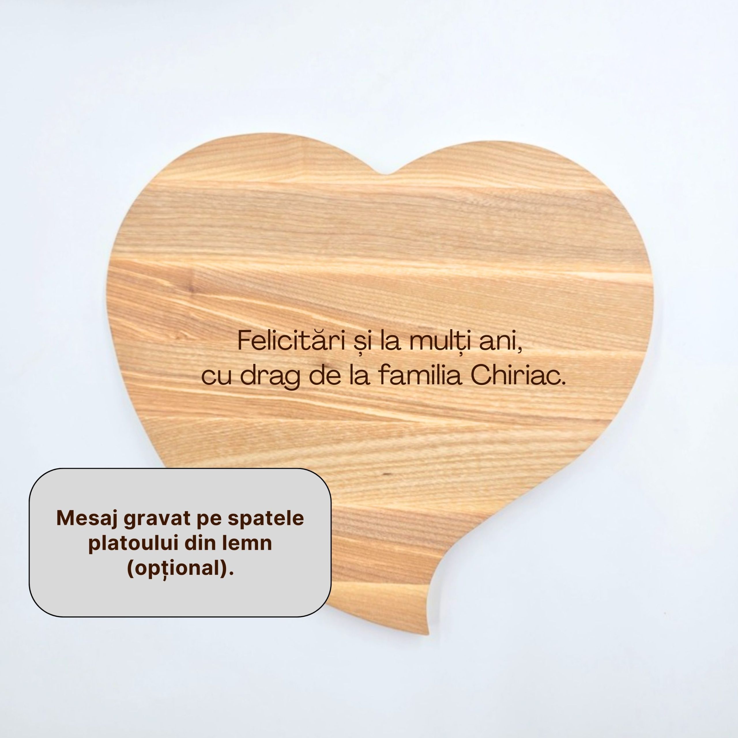 Puteți adăuga un nume, mesaj scurt sau dată, gravate pe față sau pe spate (opțional). Completați câmpul de personalizare sau scrieți-ne pentru cereri speciale – vă ajutăm cu drag!